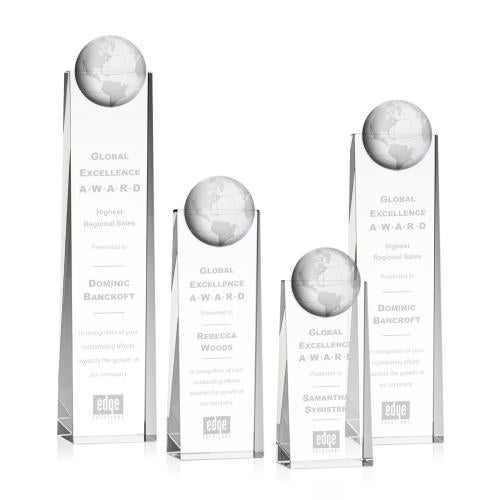 Wonderful tall optical piece with a 3D Globe mounted on the front. A statuesque piece to recognize a global trailblazer. Available in 4 Sizes