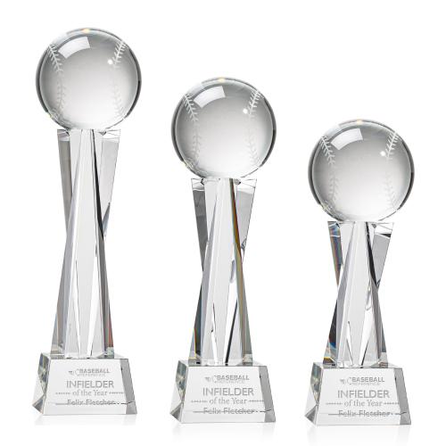 Elevate the recognition game with our Baseball Clear on Grafton Base Spheres Crystal Award. Whether celebrating a key player's achievement or marking the culmination of a memorable season, this award symbolizes excellence and dedication. Its pristine crystal baseball sits atop the sleek Grafton base, offering ample space for customized engraving-perfect for inscribing team names, logos, or heartfelt messages. As the crystal catches the light, it creates an entrancing spectrum that echoes the dynamism of the game, making it not just an award, but a treasured keepsake that captures the spirit of victory and the glory of baseball.