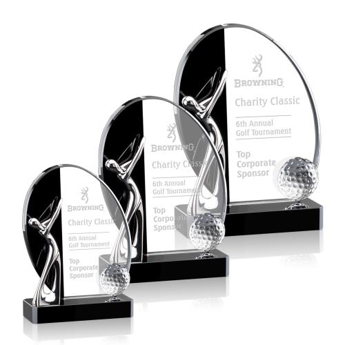Exquisite Clear and Black Optical Crystal combined with cast metal and an optical crystal golf ball creates a magnificent golf award. Available in 3 sizes.