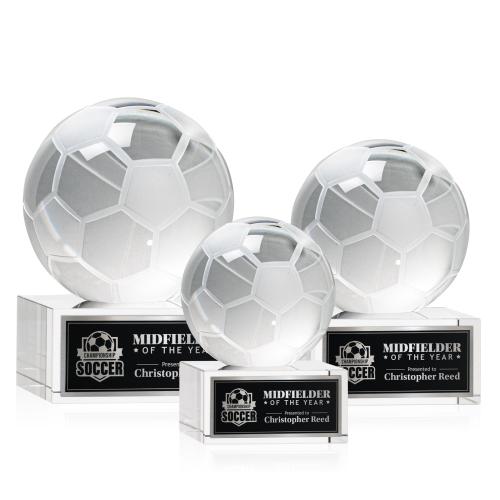 Elevating the art of recognition, the Soccer Ball Spheres on Hancock Base Crystal Award is poised to become an iconic symbol of honor. Each intricately detailed sphere, etched to resemble a classic soccer ball, sits regally atop a polished Hancock base, ensuring maximum impact. Perfect for engraving, this award offers ample space for a bespoke message, club emblem, or recipient's name, making it a truly personalized tribute. Ideal for celebrating individual or team successes, this prestigious crystal award will be a treasured reminder of achievement and a timeless piece in any trophy collection.