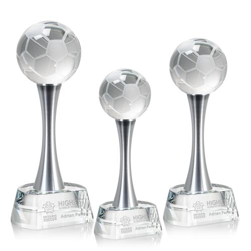Elevate your awards ceremony with the Soccer Ball Spheres on Willshire Base Crystal Award, a symbol of prestige for soccer aficionados. This exquisite piece stands as a testament to achievement, with its gleaming metal stem gracefully supporting the crystal soccer ball-a testament to the game's global allure. Perfect for engraving, the clear Optical base beckons to etch a winner's name, creating a personalized memento. Whether recognizing a standout player or commemorating a team's victory, this award is more than a trophy-it's a cherished emblem of soccer's enduring spirit and triumph.