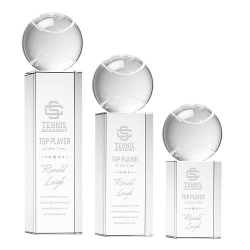 Elevate recognition to new heights with the exquisite Tennis Ball Spheres on Dakota Base Crystal Award. Each award is a pristine canvas awaiting your unique touch-personalize with an inscription or logo to truly honor the recipient's achievements. This award's elegant simplicity and clear crystal reflect the purity of success, making it not just an award, but a statement piece. The perfect accolade for winners and contributors alike, it stands as a testament to the passion and hard work behind every victory on the court. Add this timeless piece to your award ceremony and celebrate excellence in a way that will be remembered.