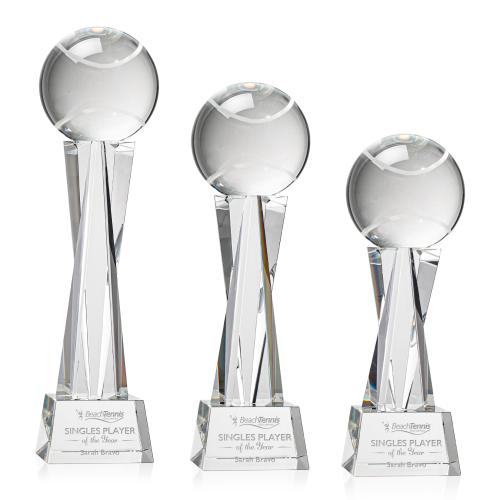 Enhance the celebration of victory and the acknowledgment of talent with our Tennis Ball Clear on Grafton Base Spheres Crystal Award. With the ability to capture and reflect light in a dynamic manner, this award illuminates any space, symbolizing the bright achievements of its recipient. The sleek Grafton base, upon which the crystal tennis ball is perched, provides ample space for bespoke deep etching-perfect for engraving a champion's name, date of triumph, or a custom logo. This award is not just a token of recognition but an elegant keepsake that will be cherished for years to come.