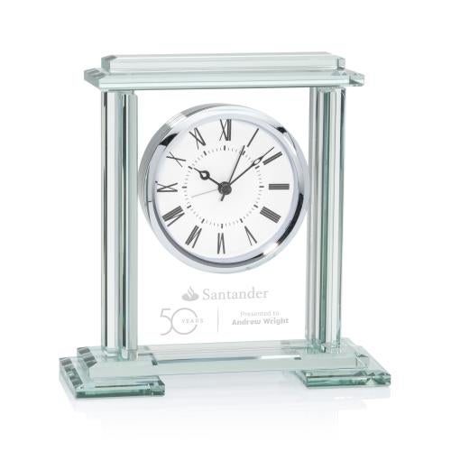 Honor years of steadfast commitment with our Jade Crystal Cranston Clock, adorned with chrome details, epitomizes elegance and significance. This clock features a double-stepped base and top. Ideal for commemorating milestones of service or celebrating a well-deserved retirement, its exquisite craftsmanship and timeless design make it a cherished symbol of appreciation. Product Size: 6.625" W x 6.875" H x 2.5" D
