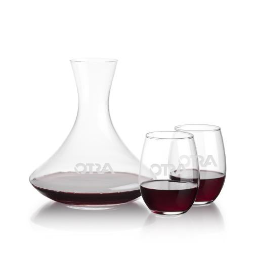 Contemporary Carafe set. Elegant and sophisticated, a great gift for any occasion. Includes 48oz Senderwood Carafe with your choice of 2 or 4 15oz Standford wine glasses.