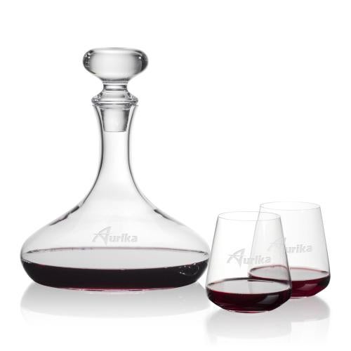 Handsome curved design perfect for decanting wine complete with a complementing stopper. Matched with our classic Breckland 13oz Stemless Wine, which is designed to bring out the fruit flavors and lessen the tannins in your favorite white wine. Available with 2 or 4 stemless wine glasses set.