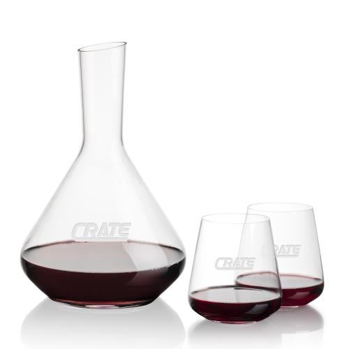 A carafe set is a staple in every wine connoisseur's collection and The Terrassa Carafe & 2 Breckland Stemless Wine set is a stellar choice. This 54oz medium-sized carafe is perfect for medium bodied red wines and is accompanied by your choice of 2 or 4 8oz Breckland Stemless Wine glasses. This is an excellent set that will enhance the aromas and flavors of your favorite vintage while elevating your guests' overall experience. A perfect executive gift. Product Size: 6.25" W x 9.5" H