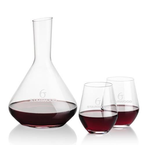A carafe set is a staple in every wine connoisseur's collection and The Terrassa Carafe & 2 Reina Stemless Wine set is a stellar choice. This 54oz medium-sized carafe is perfect for medium bodied red wines and is accompanied by your choice of 2 or 4 11.5oz Reina Stemless Wine glasses. This is an excellent set that will enhance the aromas and flavors of your favorite vintage while elevating your guests' overall experience. A perfect executive gift. Product Size: 6.25" W x 9.5" H