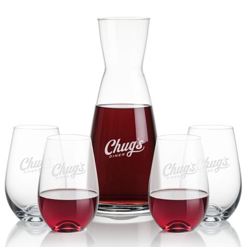 The Winchester Carafe & Boston Stemless Wine is a brilliant set that anyone would be pleased to add to their barware collection! Including a large 36.5oz crystalline carafe and your choice of 2 or 4 stunning 13oz Boston Stemless Wine Glasses. All are packaged in a black satin-lined gift box. Carafe Size: 3.875" W x 10" H