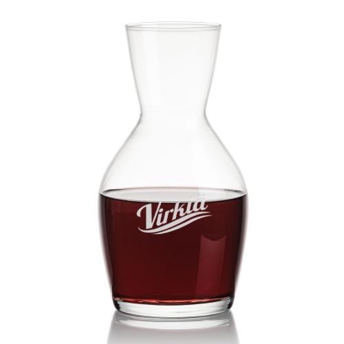 Our 38oz Crystalline Westwood Carafe holds a classic shape featuring a wide bottom, curved neck, and flared top for a beautiful finish. This carafe is the ultimate choice for serving your favorite vintage. An excellent gift for any occasion! Carafe Size: 3.75" x 8.125"