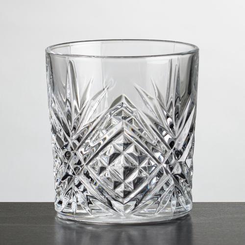 Beautifully crafted with stunning artistry cascading around the Lead Free Crystalline On The Rocks glass.