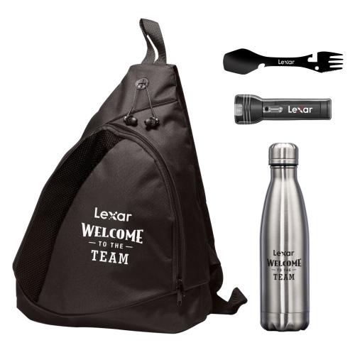 The Trailblazer Onboarding Set is designed for team members who thrive outdoors and value adventure-ready gear. It includes our durable Single Pin Bottle, versatile Camping Spork, compact Sling Bag, and a powerful Magnetic LED Flashlight - essentials for any excursion. Ideal for brands in outdoor recreation, energy, agriculture, construction, and environmental services, this set brings utility and style to every journey while aligning perfectly with rugged, on-the-go lifestyles.