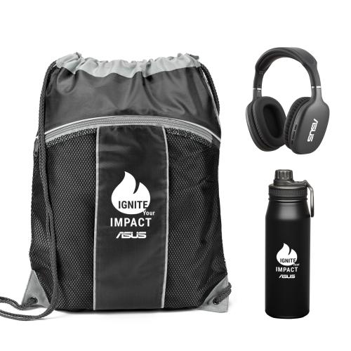 The All-Star Welcome Onboarding Set makes a bold first impression with high-quality essentials your team will love. It features a sleek stainless steel bottle with twist chug lid, a roomy Leader Drawstring Bag, and premium Marconi Headphones for work or play. Perfect for starting strong, this set is a great fit for industries like sports teams, fitness and wellness companies, athletic departments, recreation centers, and outdoor brands looking to energize new team members from day one.
