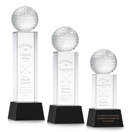 Inspire awe in every recipient with the luxurious Golf Ball Black on Belcroft Base Spheres Crystal Award. A distinctively designed Belcroft black base elevates the sparkling optical crystal, providing a sleek, modern contrast that accentuates the textured golf ball sphere. Ideal for engraving, the ample clear column presents space for personalized messages, names, or dates, ensuring your honoree's achievements are immortalized with elegance. Whether presented at corporate events, golf club ceremonies, or as an executive gift, this award merges the spirit of the game with the prestige of recognition, leaving a lasting impression of accomplishment and appreciation.